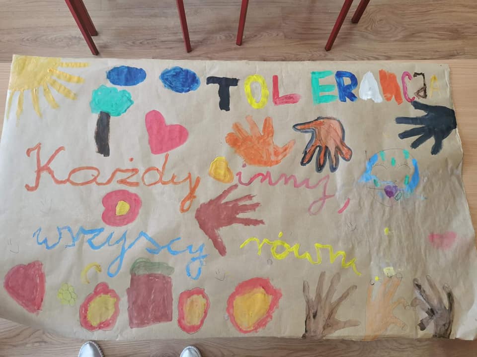 Nie ukrywamy, że to jedna z ciekawszych propozycji w tej edycji. Śmiała inicjatywa aktywności, mocno angażująca społeczność uczniowską, ale też środowisko lokalne. W ramach propozycji lokalnych działań antydyskryminacyjnych pojawiła się idea stworzenia… muralu. Na murze (przestrzeń udostępniona przez Urząd Miasta), tuż obok Komendy Miejskiej Policji powstała „Uliczna Galeria”. Prezentacja prac, projektów, rysunków wyłonionych w ramach szkolnego konkursu, podejmującego temat równości, szacunku, przyjaźni, godności, mowy nienawiści.