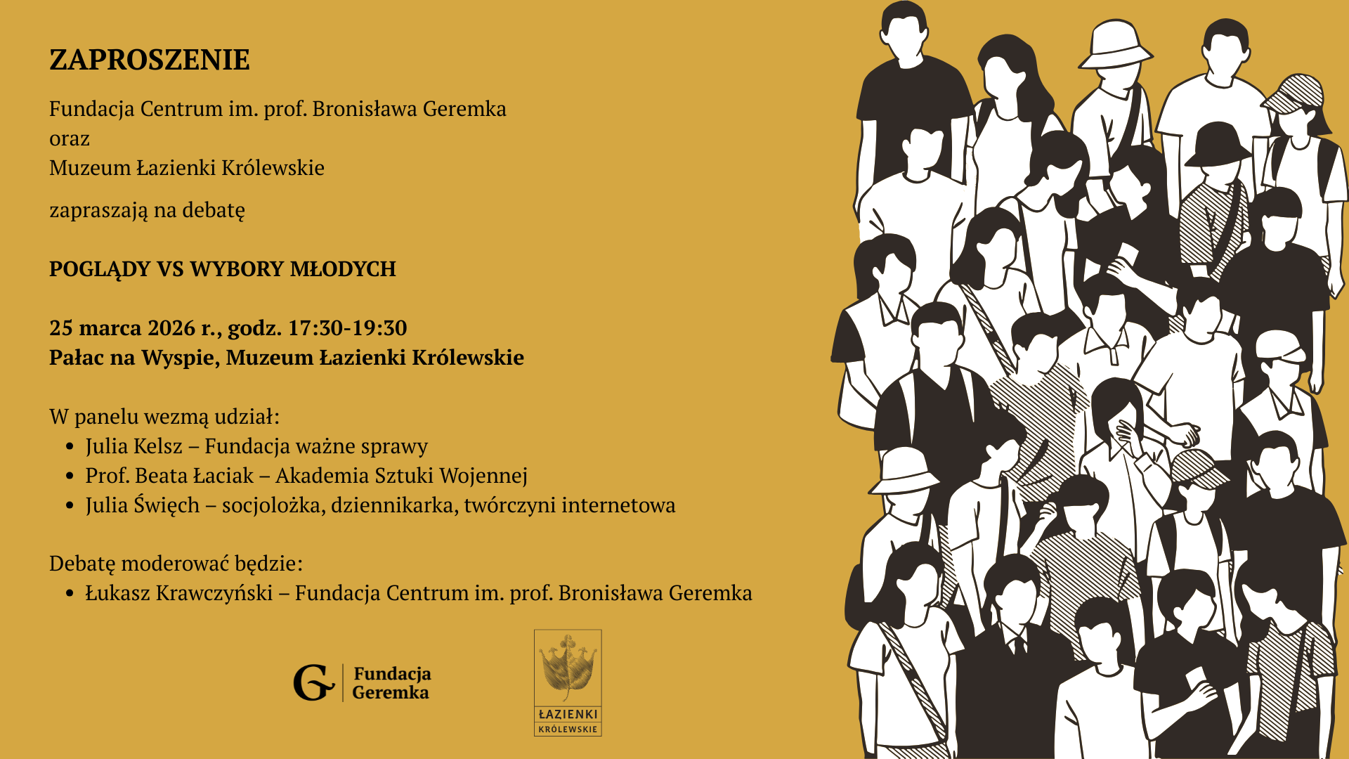 Fundacja Centrum im. prof. Bronisława Geremka wraz z Muzeum Łazienki Królewskie w Warszawie zapraszają na kolejną debatę w ramach cyklu „Środy Europejskie”.